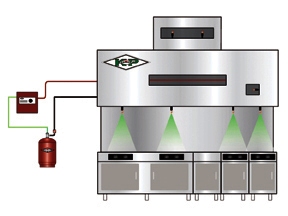 Commercial kitchens like those we see in restaurants and catering facilities in mining, oil and gas, typically use large gas or electric cooking stations involving cooking oils and fats. These can catch on fire and are not normal fire risks needing specialised equipment. Using normal fire extinguishers may be impractical or dangerous. IFES offers the Amerex Restaurant system. This is a fixed system with fire detection over the cooking appliances with piping and nozzles already in place. If a cooking station catches fire, it releases a special agent that reacts with the cooking oils to form a vapour sealing blanket and suffocate the fire. It can be designed to protect a zone using the ZD System, or if cooking equipment is fixed in place then using the KP System. We can also supply a specialised fire extinguisher with this type of agent for tackling cooking oil fires.